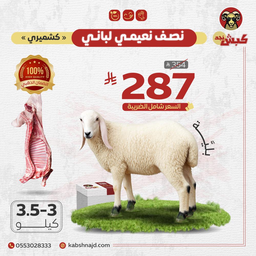 نص نعيمي كشميري لباني يأتيكم بالطائرة (بدون رأس أو أحشاء) ويتم من قبلنا التقطيع والتغليف والتوصيل،