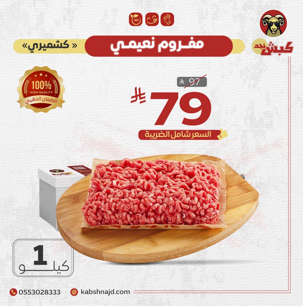 حيث يقدم لكم متجر كبش نجد أحد أجود أنواع لحم النعيمي الكشميري المفروم بلا عظم بالإضافة إلى التقطيع والتغليف حسب رغبتكم وتوصيلها إلى باب بيتك.