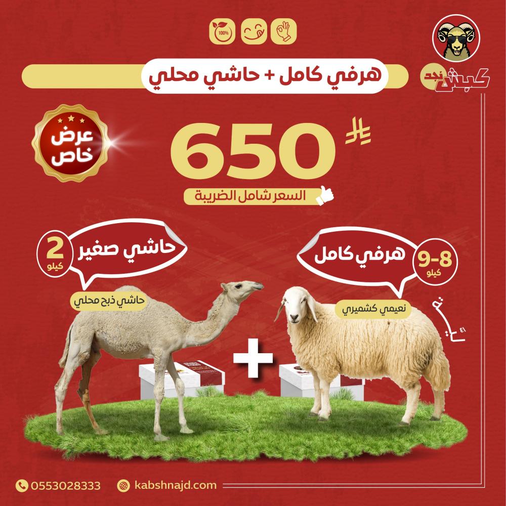 هرفي كامل من 8-9 كيلو (نعيمي كشميري) + 2 كيلو حاشي صغير (ذبح محلي) ب650 ريال فقط شامل الضريبة والتوصيل مجاني