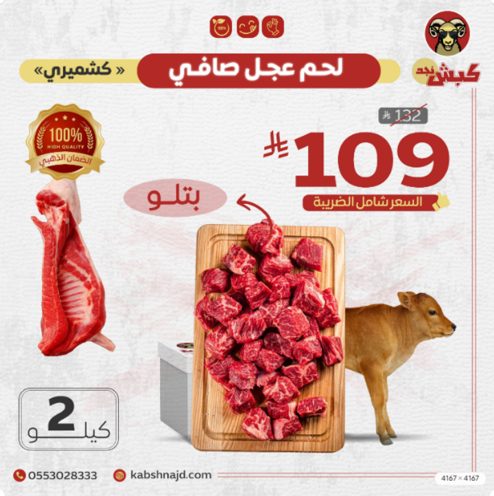 عجول باكستاني , لحم باكستاني استمتع بأفضل أنواع اللحوم من كبش نجد، حيث الجودة الفائقة، الطراوة المثالية، والمذاق الغني كما أنه لحم طبيعي 100% ، مستورد من أفضل المزارع الباكستانية، ليمنحك تجربة طهي فاخرة ومذاق لا يقاوم لذا اطلبه الآن وتمتع بتوصيل سريع وخدمة موثوقة.